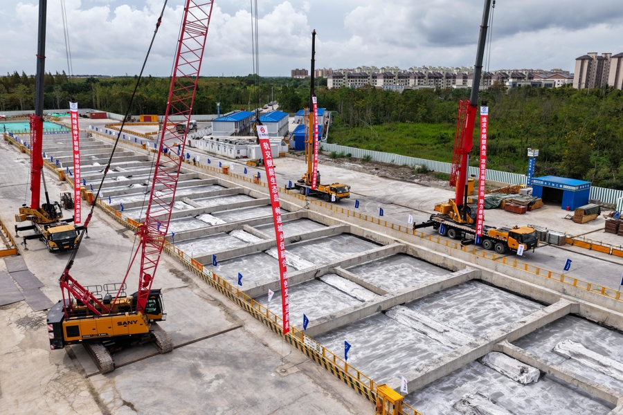 今年以来,22号线(崇明线)工程建设者克服连续高温挑战,各标段先后取得重大进展,继穿越长江超大盾构区间成功贯通、区间正式启动铺轨后,昨天深夜,在崇明岛上的上海轨道交通22号线终点站裕安站现场,最后一块车站顶板顺利浇筑完工,这也意味着22号线(崇明线)全线车站实现了主体结构封顶。
