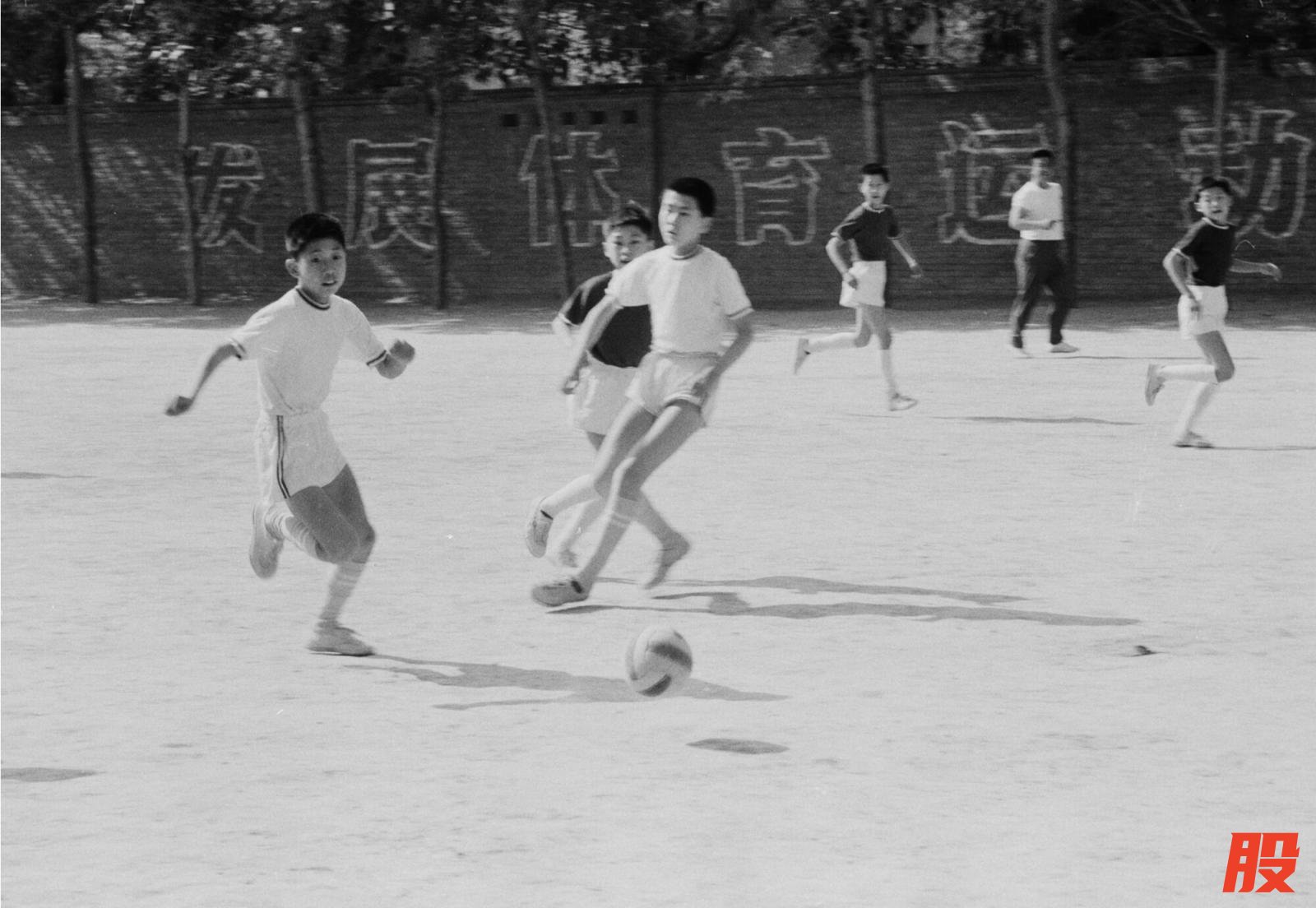 1985年,朝阳区三里屯二小的冠军足球小队正在操场上练球。王宝琴摄