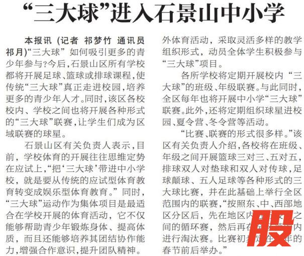 2010年后,常态化赛事让体育真正融入日常,班级联赛成为校园体育的主角。石景山区将足球、篮球、排球“三大球”纳入所有中小学的课程,班级间的篮球三对三、足球颠球赛轮番上演,让每一名学生都能站上赛场,过一把“校园球星”瘾。(2012年4月26日《北京日报》9版,《“三大球”进入石景山中小学》)校园赛事不再只比拼速度与名次,还加入了文明参赛打卡点、“最佳协作团队”评选、运动心得分享会等活动,让德育、美育融入体育,让赛场成为塑造品格、滋养成长的课堂。