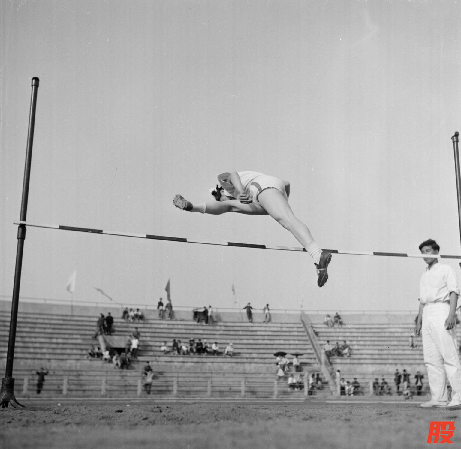 在1957年举办的北京市中学生运动会上,63中的孔令荣纵身一跃,夺得跳高比赛冠军。冯文冈摄